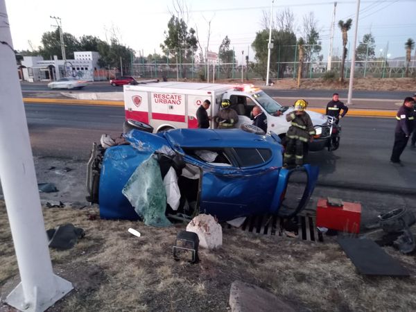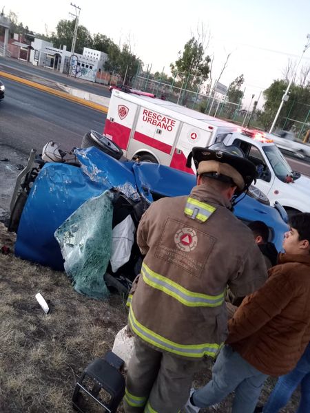Rescatistas de la Coordinación Estatal de Protección Civil atendieron a través del sistema de emergencias 911 un accidente vehicular tipo choque contra objeto fijo (señalamiento de tránsito) y volcadura, ocurrido en la calzada Héroes de Chapultepec a la altura de la Unidad Deportiva Norte, con dirección de Zacatecas hacia Fresnillo.