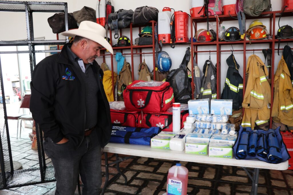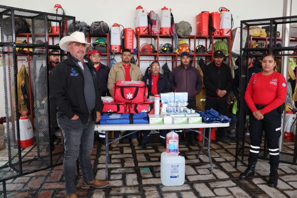 El departamento de Protecci贸n Civil y Bomberos de Jalpa brinda atenci贸n directa a toda la poblaci贸n que se encuentra en situaci贸n de riesgo, por lo que es de suma importancia que este departamento cuente con herramientas para poder desarrollar su trabajo de manera oportuna, es por eso que el Presidente Municipal Olegario Viramontes, acudi贸 esta ma帽ana del 9 de enero a realizar la entrega de equipo, el cual consiste en: 3 botiquines, 3 juegos de f茅rula, material de curaci贸n y 2 anaqueles para acomodar material y equipo de trabajo, todo esto con una inversi贸n de m谩s de $ 26 mil pesos por parte del Gobierno Municipal.