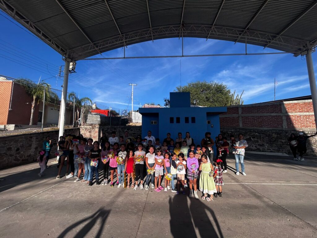 Durante el evento, los niΓ±os de la Villita, sorprendieron al presidente con una porra que coreaba su nombre, reflejando la alegrΓa de los niΓ±os por la presencia del alcalde de Jalpa.