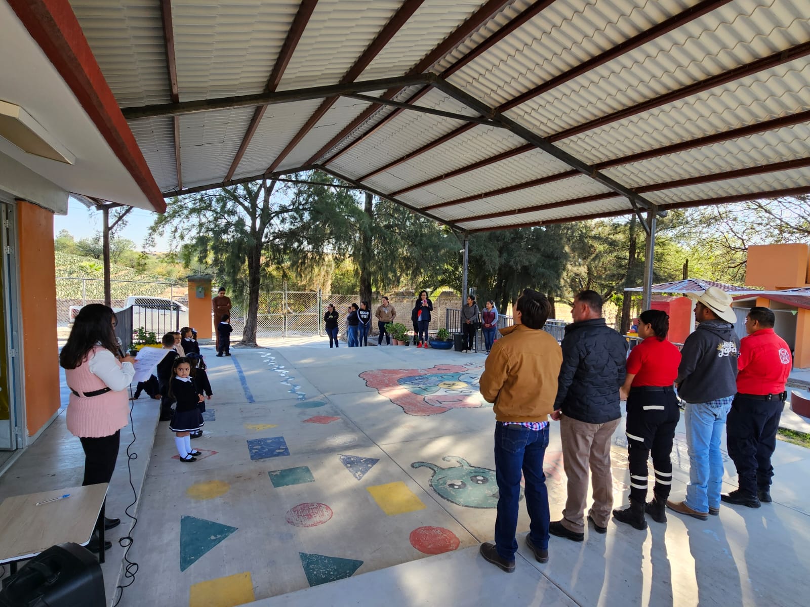 Luego de atender la solicitud que le hicieran al Presidente Municipal Olegario Viramontes tanto padres de familia como la maestra del jardΓ­n de niΓ±os, el personal del Departamento de Obras PΓΊblicas realizΓ³ la colocaciΓ³n de loza de concreto en un costado del patio donde los niΓ±os realizan actividades y que no tenΓ­a las condiciones adecuadas. TambiΓ©n se llevΓ³ a cabo la colocaciΓ³n de un barandal en un espacio que era un riesgo para la comunidad estudiantil.
