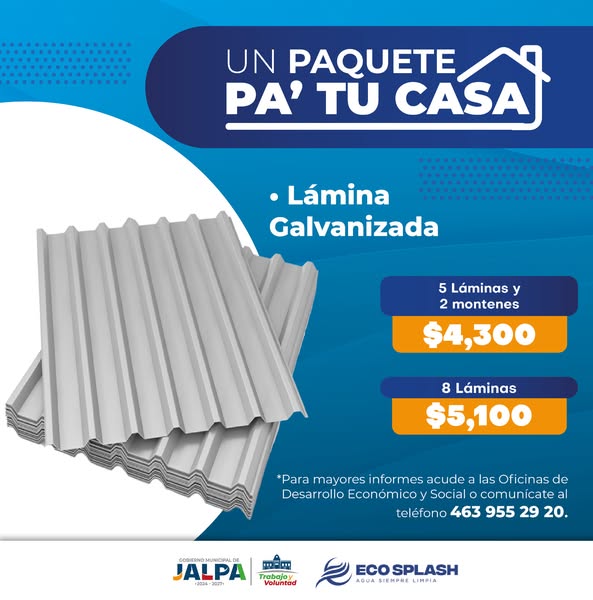 Para acceder a uno de estos paquetes, acércate a las oficinas de Desarrollo Económico y Social, en la Presidencia Municipal, presenta tu credencial de elector y quedarás registrado.
