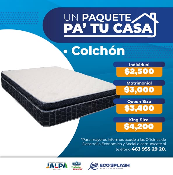 El Gobierno Municipal de Jalpa, a través de la dirección de Desarrollo Económico y Social, pone a tu disposición el programa “Un Paquete, Pa´Tu Casa”, en donde pensando en el beneficio inmediato para ti y tu familia, activa dos paquetes para el acondicionamiento de tu casa-habitación, todo a precios accesibles.