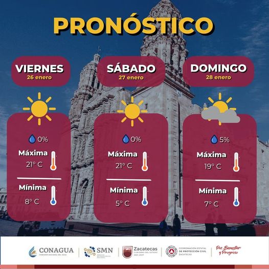 🌤️Pronóstico del #ClimaEnZacatecas para el fin de semana