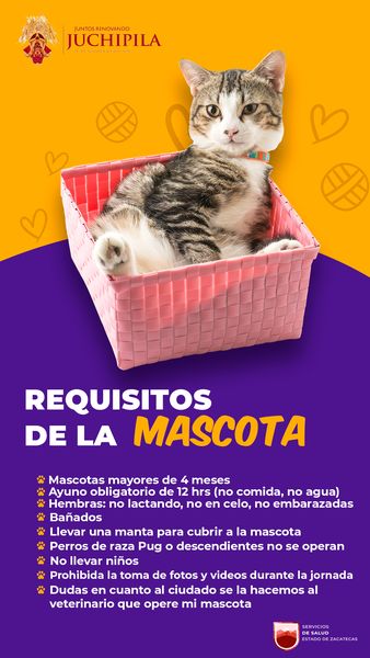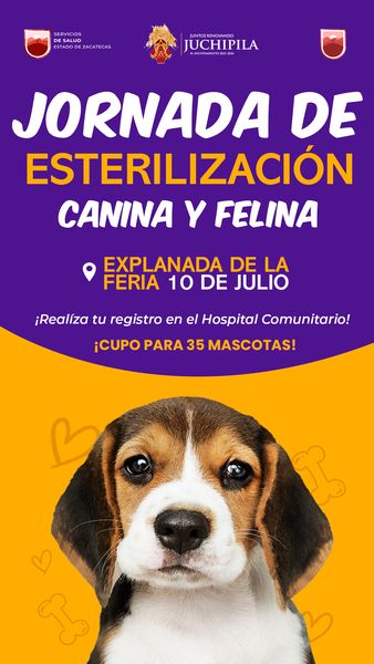 El hospital Comunitario de Juchipila en coordinación con Presidencia Municipal, informan que el próximo 𝟭𝟬 𝙙𝙚 𝙅𝙪𝙡𝙞𝙤 se estará realizando la “Jornada de esterilización canina y felina”, en la Explanda de la Feria, para que acudas con tu mascota.