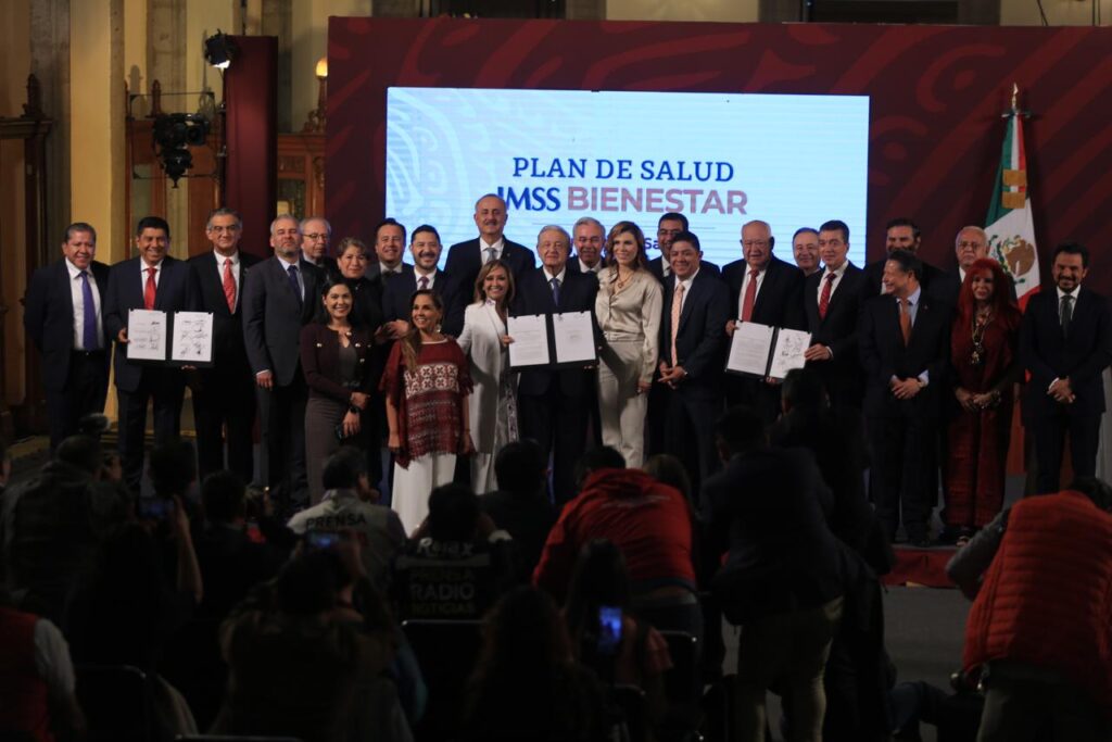 En la conferencia mañanera de este martes, ante 23 Gobernadoras y Gobernadores y sus representantes, el Presidente Andrés Manuel López Obrador reconoció y agradeció a quienes decidieron suscribirse al sistema del Instituto Mexicano del Seguro Social (IMSS)-Bienestar, con el que se consolida la Cuarta Transformación en el tema de la salud pública, ya que se cumple un derecho constitucional de brindarle asistencia gratuita a la población más vulnerable.