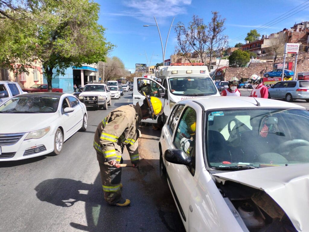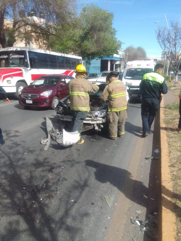 Zacatecas, Zac.- Paramédicos y rescatistas de la Coordinación Estatal de Protección Civil atendieron un llamado del Sistema de Emergencias 911 para atender un accidente vehicular tipo choque por alcance, en hechos que ocurrieron la tarde de este sábado en el boulevard López Mateos, cerca de la agencia Nissan.