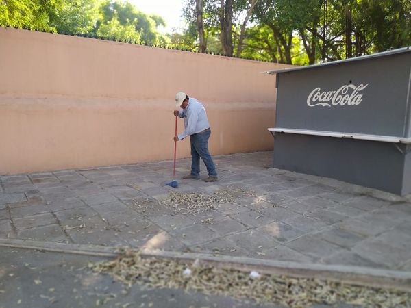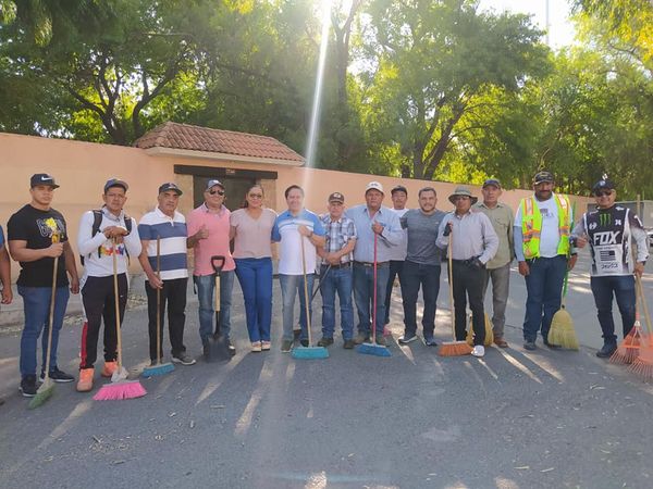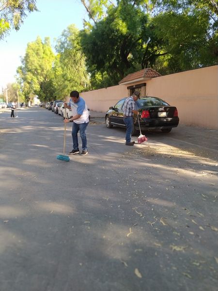 Como cada viernes trabajadores del Ayuntamiento salieron a barrer, en esta ocasión fue en las inmediaciones del Ágora José González Echeverría y darán continuidad en avenida Hidalgo.