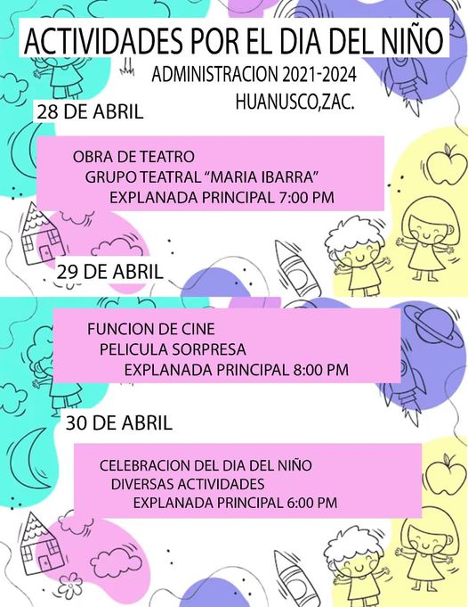 Actividades para el día del Niño en Huanusco 27 abril, 202427 abril, 2024efrain Buenos días, les compartimos las actividades programadas para el día del niño TAMBIÉN TE PUEDE INTERESAR EFRAIN CHAVEZ EN EL BARRIO DE SAN FRANCISCO, HUANUSCO