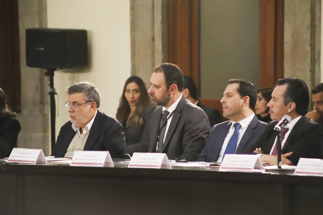 Alejandro Tello comunicó que, en reunión previa con Alfonso Durazo y los principales funcionarios de la Secretaría de Seguridad Pública y Protección Ciudadana, se analizaron cifras y acciones que se realizan en los estados; se acordó reglamentar las Mesas de Seguridad y Construcción de la Paz.