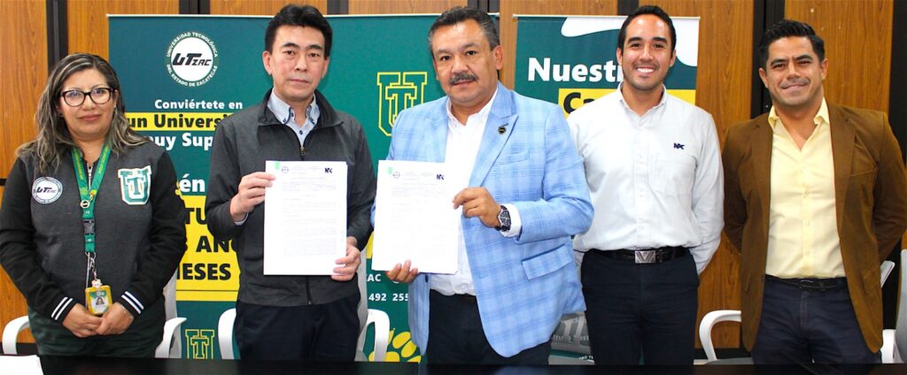 De esta manera, el Rector Gonzalo Franco Garduño signó el convenio a nombre de la Universidad, mientras que por parte de Nagakura, firmaron Katsumi Suzuki, representante legal, así como José Armando Ramírez, gerente de Recursos Humanos de la empresa.