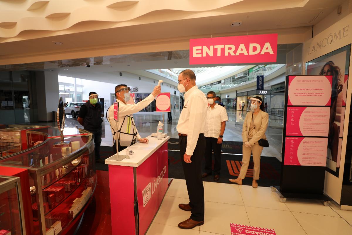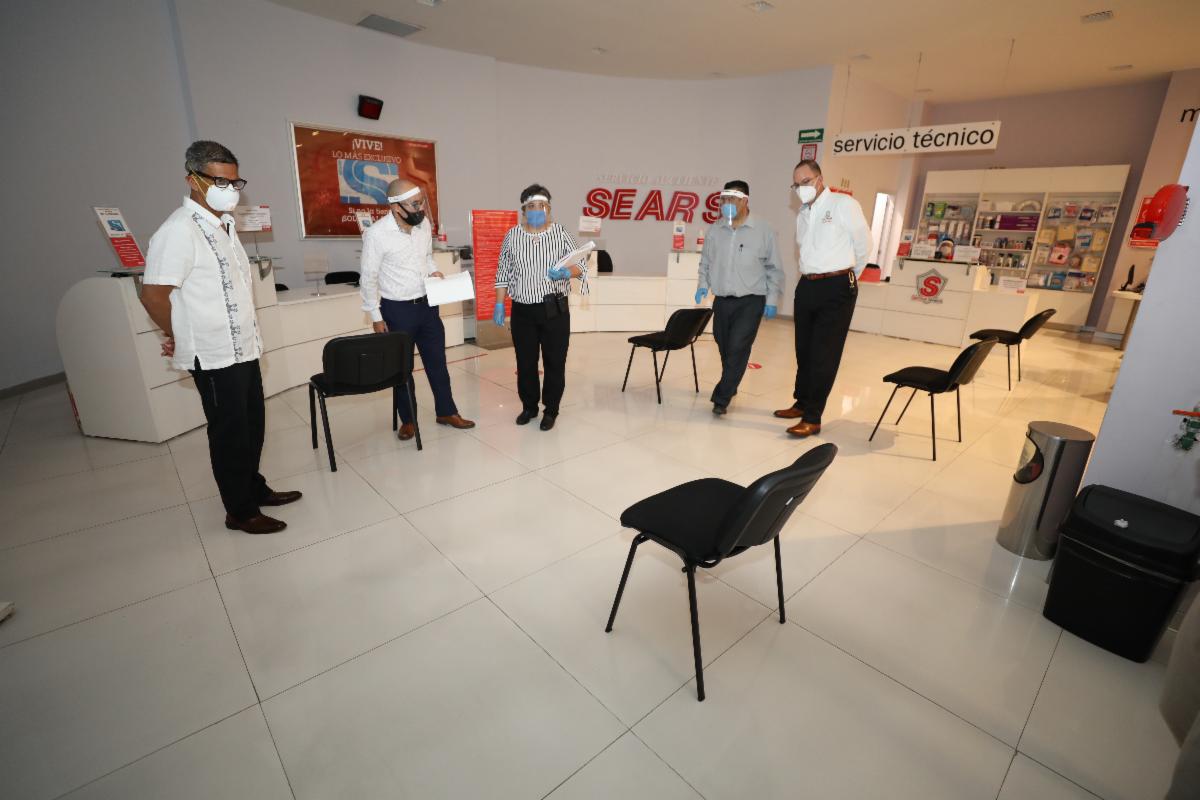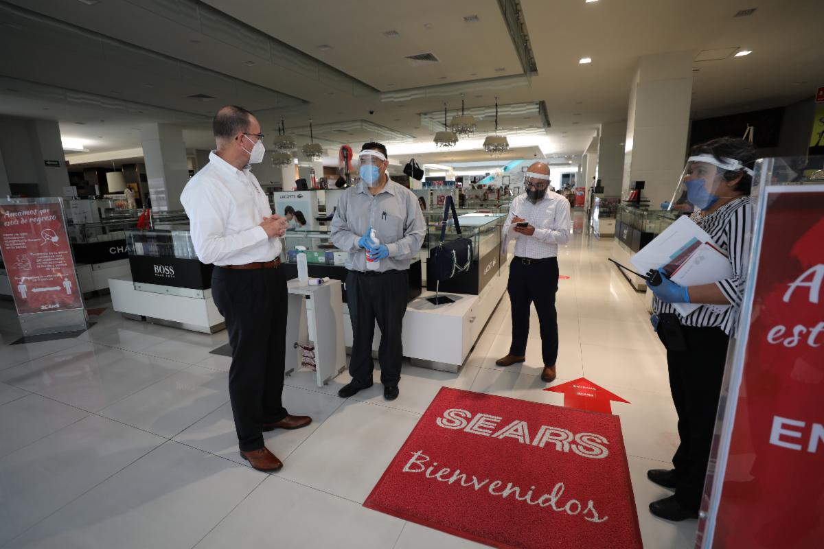 Acompañado de personal de Gobierno del Estado, el funcionario destacó que tanto en la industria como en otras unidades económicas, la autoridad debe corroborar que los protocolos sean los adecuados y queden documentados. En particular se revisaron a las tiendas Liverpool, Sfera y Sears, las cuales abrieron en esta primera fase, por lo que las autoridades les hicieron recomendaciones para la implementación de medidas correspondientes a la instalación de filtros sanitizadores.