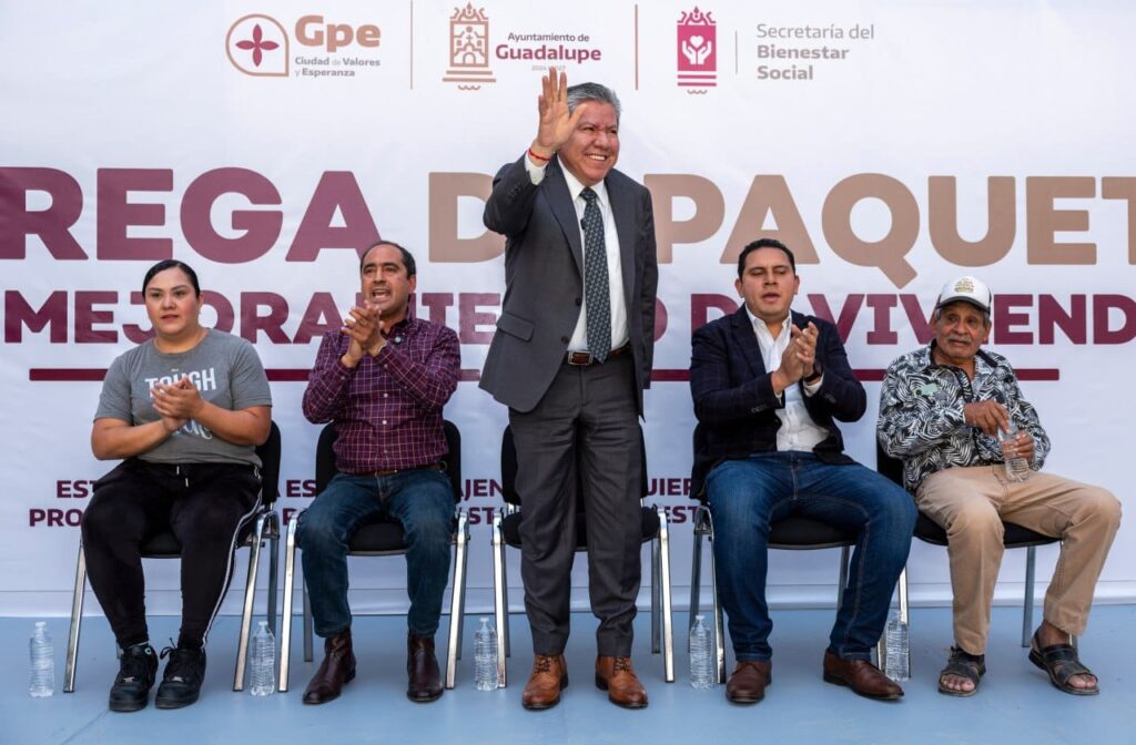 Afirmó que se trabaja en equipo con la Presidenta Claudia Sheinbaum, el Gobierno del Estado, legisladores y, sobre todo, con las familias de Guadalupe, y como muestra está el programa de Mejoramiento de Vivienda, con el que se dignifican las condiciones de vida de familias vulnerables mediante el reparto de materiales de construcción.