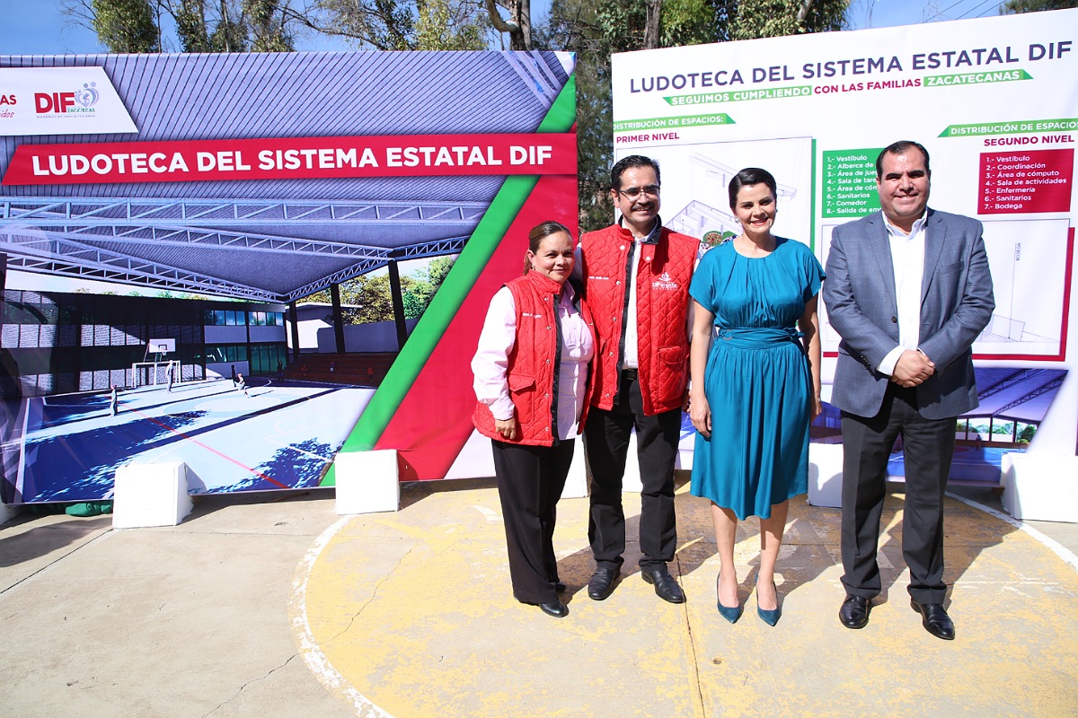 Zacatecas, Zac.- La Presidenta Honorífica del Sistema Estatal para el Desarrollo Integral de la Familia (SEDIF), Cristina Rodríguez de Tello dio el banderazo de inicio de la obra de construcción de la Ludoteca para hijas e hijos del personal de la institución de asistencia social, la cual tendrá un costo de 7.8 millones de pesos.