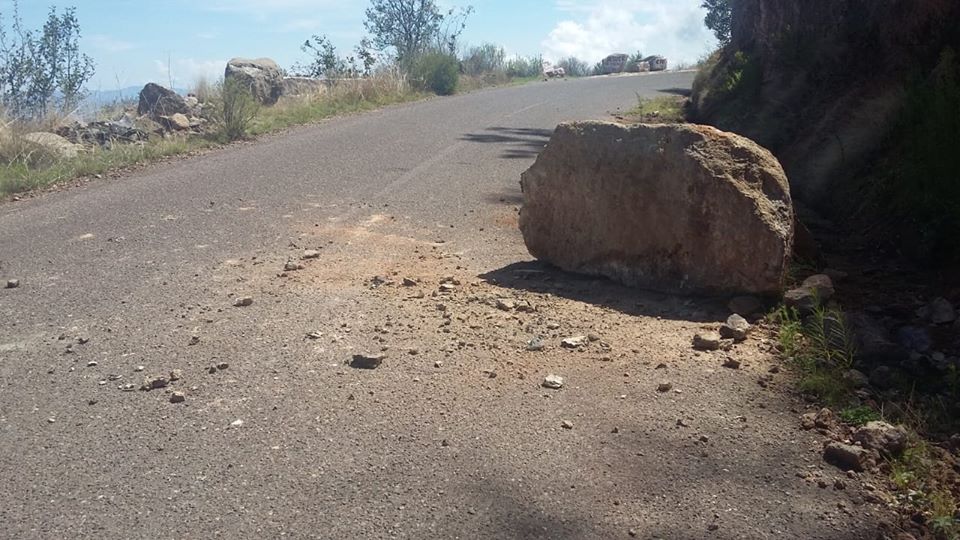 Jorge Luis Pedroza Ochoa, titular de la Secretaría de Obras Públicas (SOP), informó que personal de la Subsecretaría de Comunicaciones realiza trabajos y maniobras para quitar las rocas, a fin de que dicha carretera esté transitable.