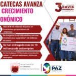 Los avances en materia económica son resultado del esfuerzo conjunto de los sectores público y privado. Con un gobierno que apuesta por el crecimiento económico, el emprendimiento y la innovación, Zacatecas se encamina a ser un referente nacional en desarrollo económico y social.