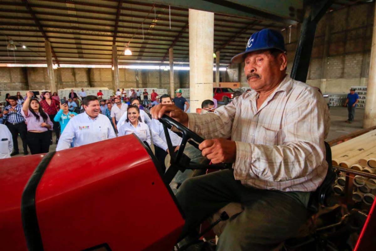 Dicha estrategia, diseñada por el Gobernador Alejandro Tello, ha permitido responder a la demanda de los productores agropecuarios, explicó el Secretario del Campo, Adolfo Bonilla Gómez, luego de entregar implementos y equipos agrícolas, líneas de conducción, tecnificación de riegos, paquetes de aves, ovinos, caprinos, planta de durazno y equipos completos para apicultores.