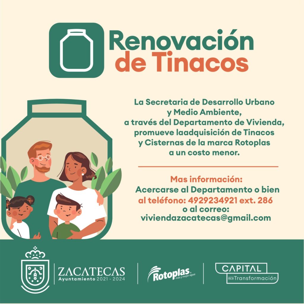 Zacatecas, Zac. A través de la Secretaría de Desarrollo Urbano y Medio Ambiente, el Ayuntamiento de la Capital realizó la entrega de apoyos para la vivienda con el Programa Municipal para la Renovación de Tinacos.