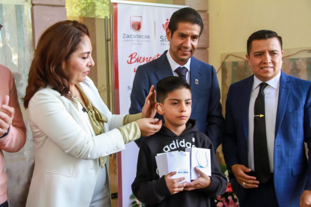 Guadalupe, Zac., 4 de octubre de 2023.- Con el propósito de fortalecer a las familias zacatecanas mediante el mejoramiento de la calidad de vida de quienes sufren alguna discapacidad, el Gobierno de Zacatecas, que encabeza el mandatario estatal David Monreal Ávila, inició la dispersión de auxiliares auditivos y sillas tipo PCI para niñas, niños, adolescentes y adultos mayores, mediante una gestión en conjunto con Fundación Telmex.