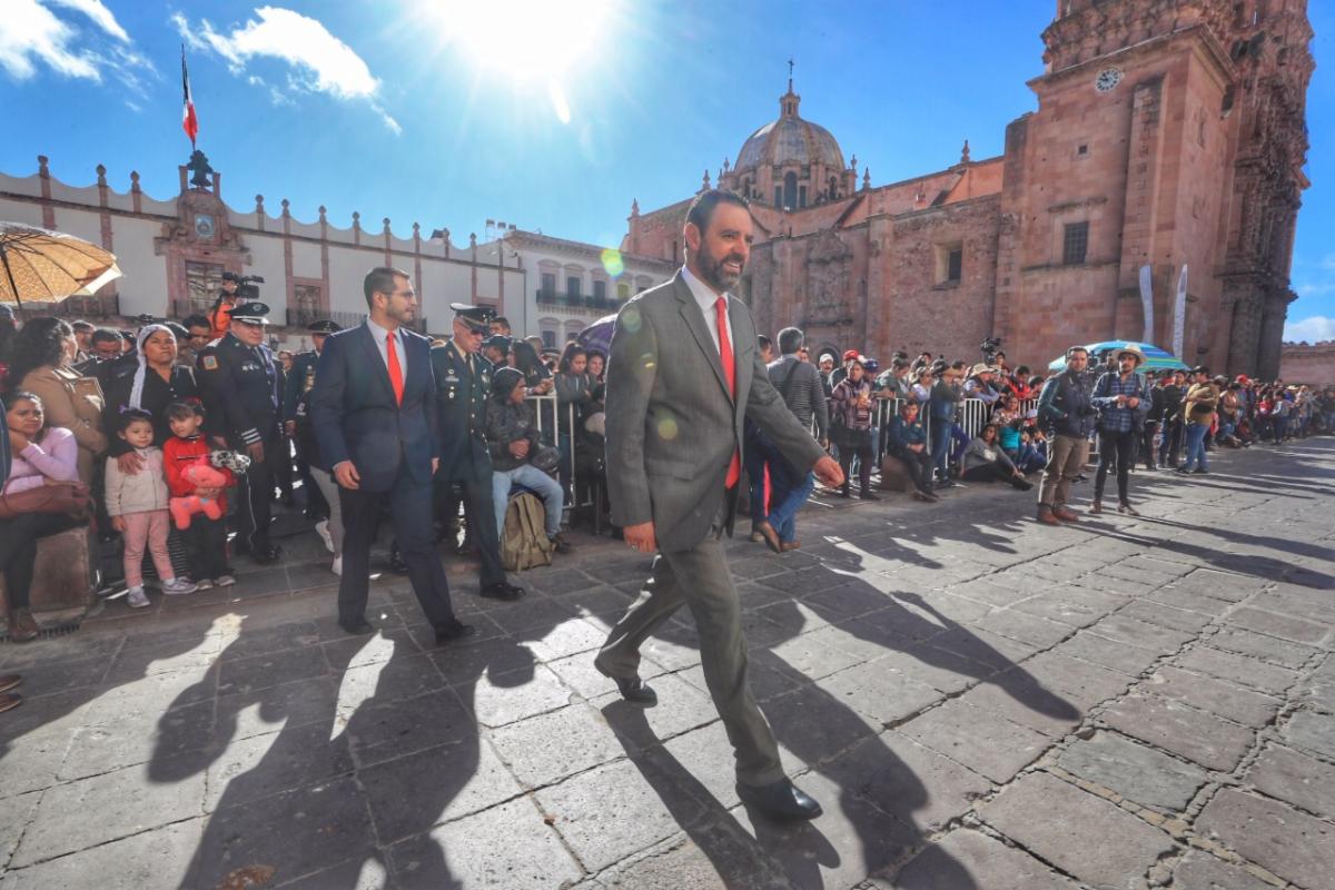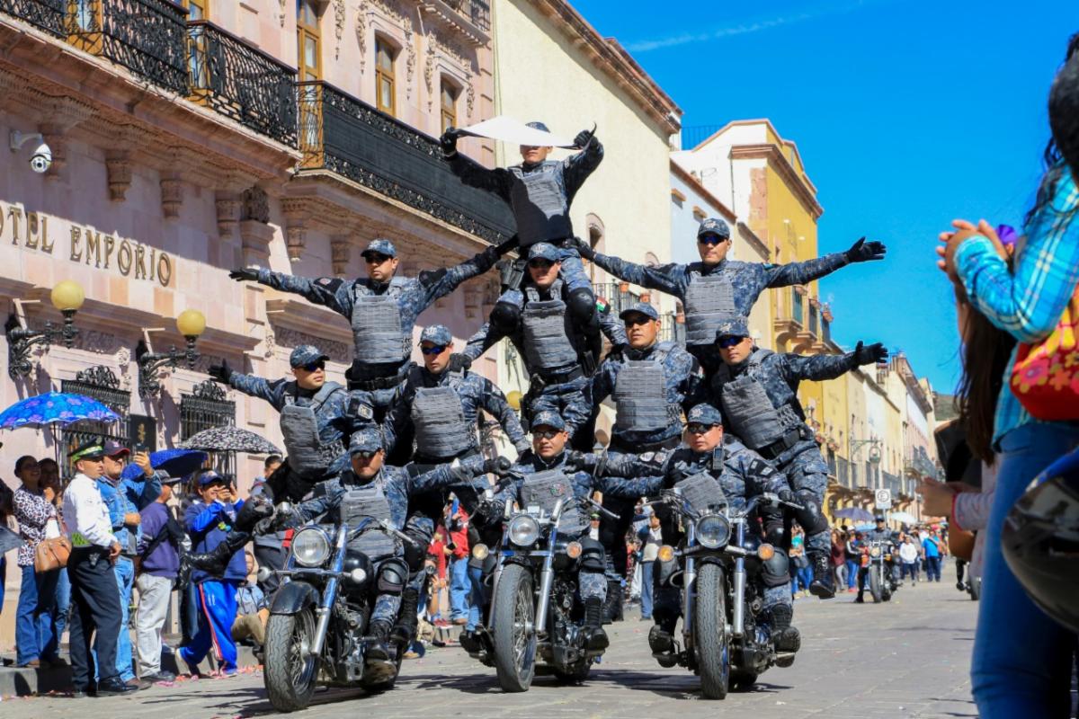 Entre ellas estuvieron 42 escuelas, con 4 mil 220 alumnos y 300 docentes, 682 elementos de las Policías Estatal, de Seguridad Vial, Metropolitana, de Proximidad, Protección Civil y Cruz Roja, así como de la Guardia Nacional. Con un colorido transitar de los contingentes, se dio paso a la Banda Sinfónica del Estado, escoltas, bandas de guerra, instituciones educativas, de seguridad pública, dependencias de gobierno, así como de la asociación de charros.