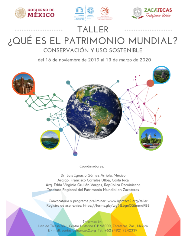 Zacatecas, Zac.- Con el objetivo de impulsarla conservación y fomento del Patrimonio entre los sectores educativos, sociales e institucionales, el Instituto Regional de Patrimonio Mundial en Zacatecas, Centro Categoría II auspiciado por la UNESCO, invita a los interesados a participar en el taller ¿Qué es el Patrimonio Mundial? Conservación y Uso Sostenible.