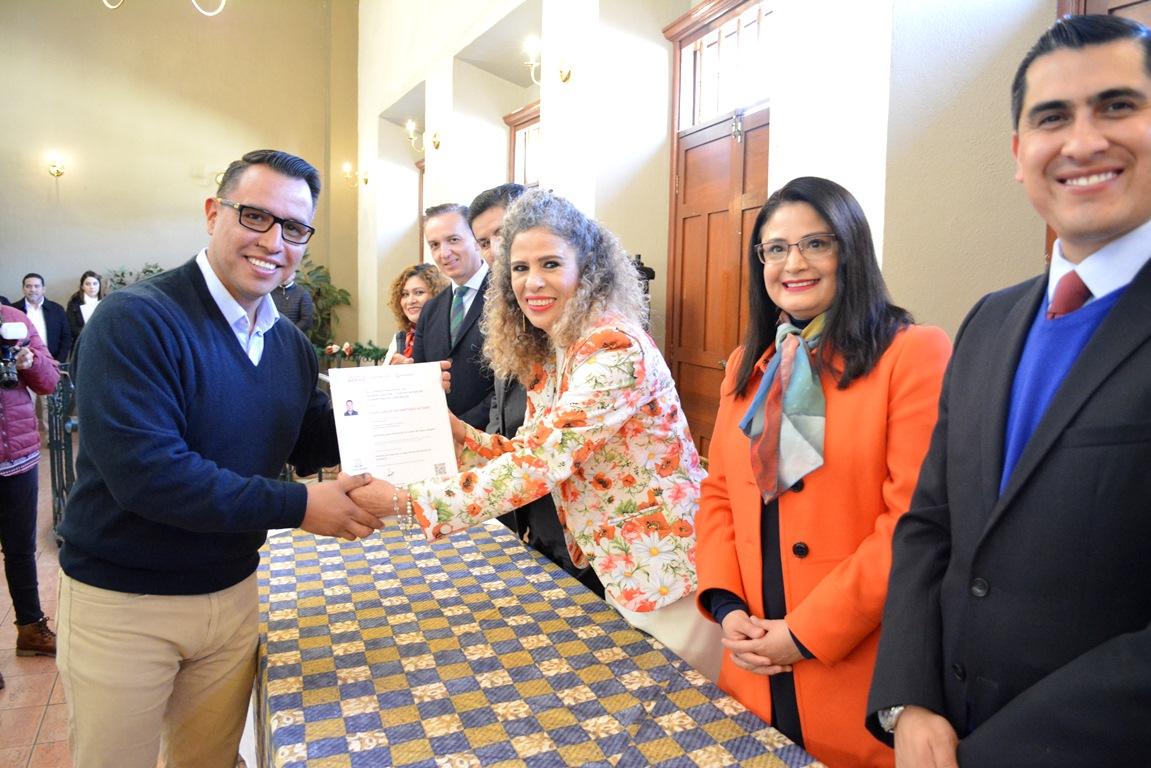 La SFP y el Inselcap realizaron cuatro procesos de alineación, evaluación y certificación de titulares y servidores públicos habilitados de las unidades de Transparencia. Por tal motivo, en la entrega estuvieron presentes también Adriana Rivero Garza y Carlos Peña Badillo, titulares de Semujer e IZEA.