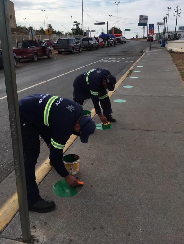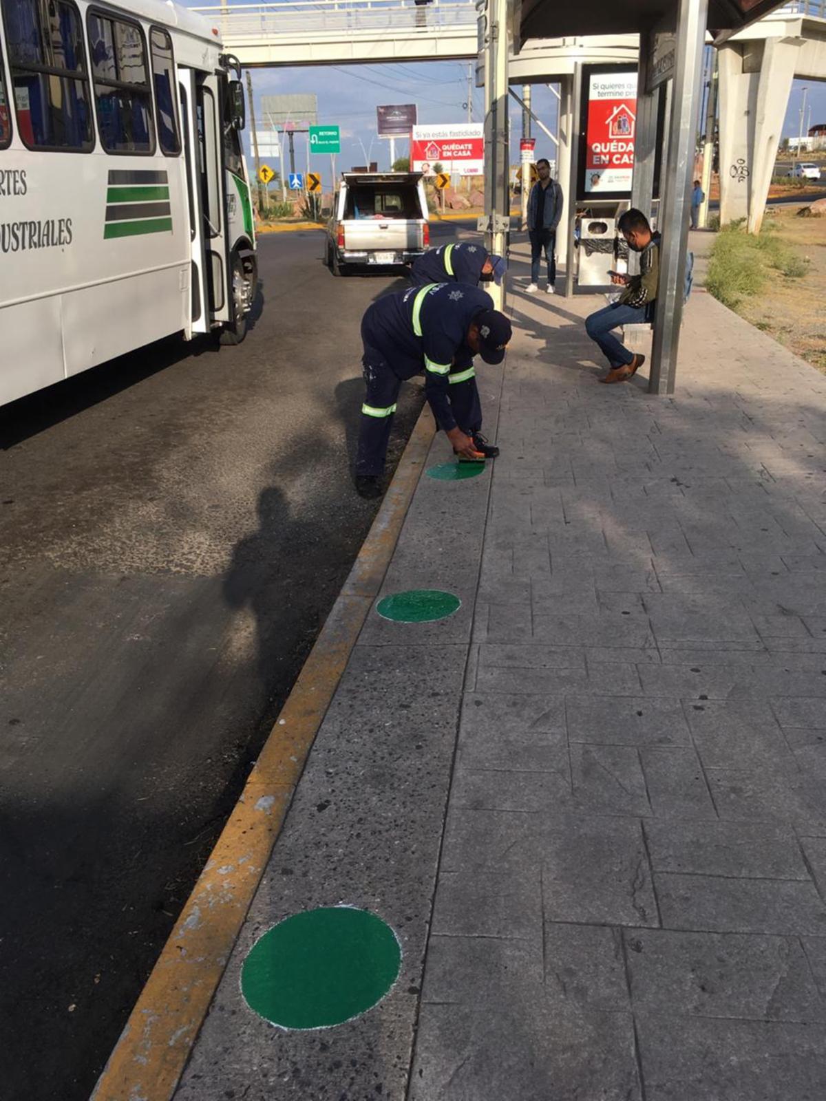 El funcionario detalló que se establecen 25 señales fijas y de pinta de piso en círculos con distancia de 1.50 metros, dirigidos principalmente a los usuarios del transporte público.