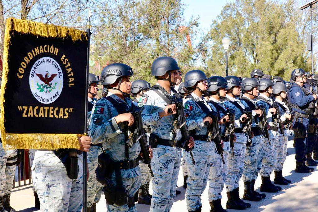 En el acto cívico estuvieron presentes los integrantes de la Mesa Estatal de Construcción de Paz: el Comandante de la Décimo primera Zona Militar, Alejandro Vargas González; el Coordinador de la Guardia Nacional en Zacatecas, Leonel Alcaraz Alarcón; la Delegada de Programas para el Bienestar, Verónica Díaz Robles; el Secretario de Seguridad Pública, Arturo Medina Mayoral.