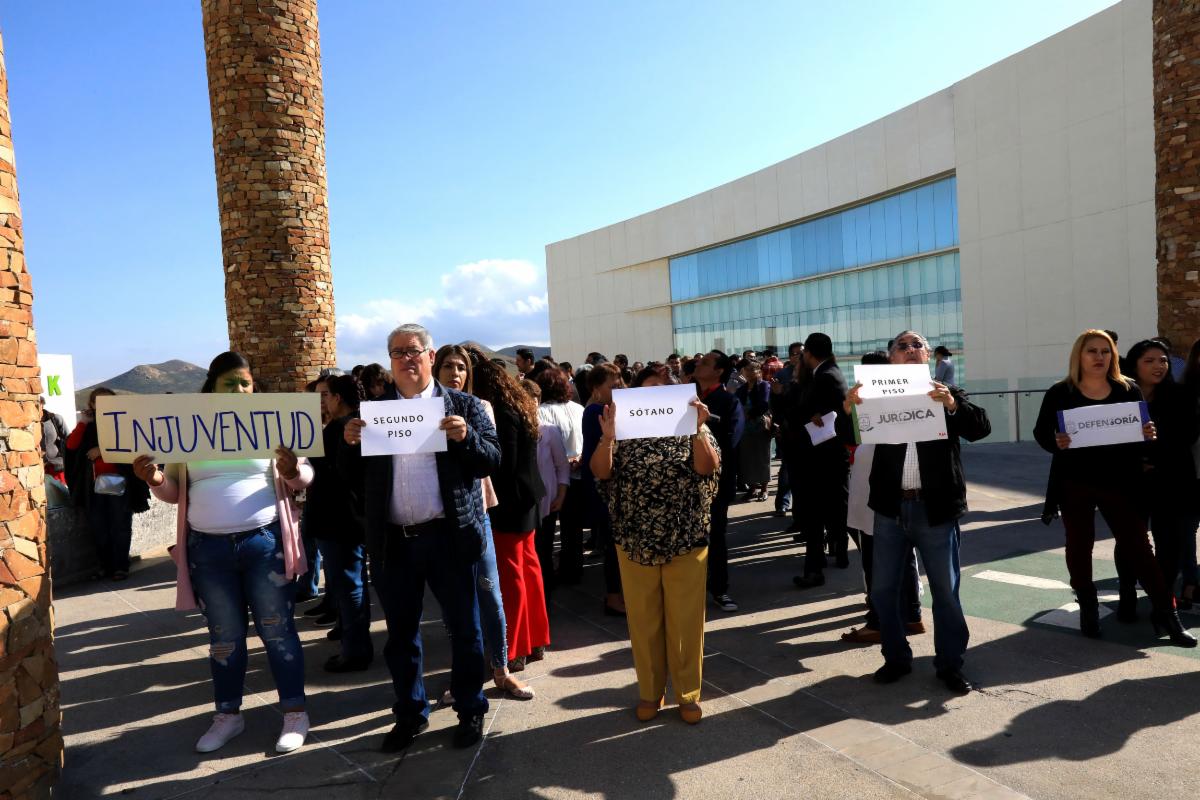 El acto cívico en la Plaza de Armas incluyó la participación de la Banda de Guerra de la Onceava Zona Militar, que realizó el toque de silencio, luego del cual el cuerpo de Bomberos activó las sirenas de los vehículos de emergencia.