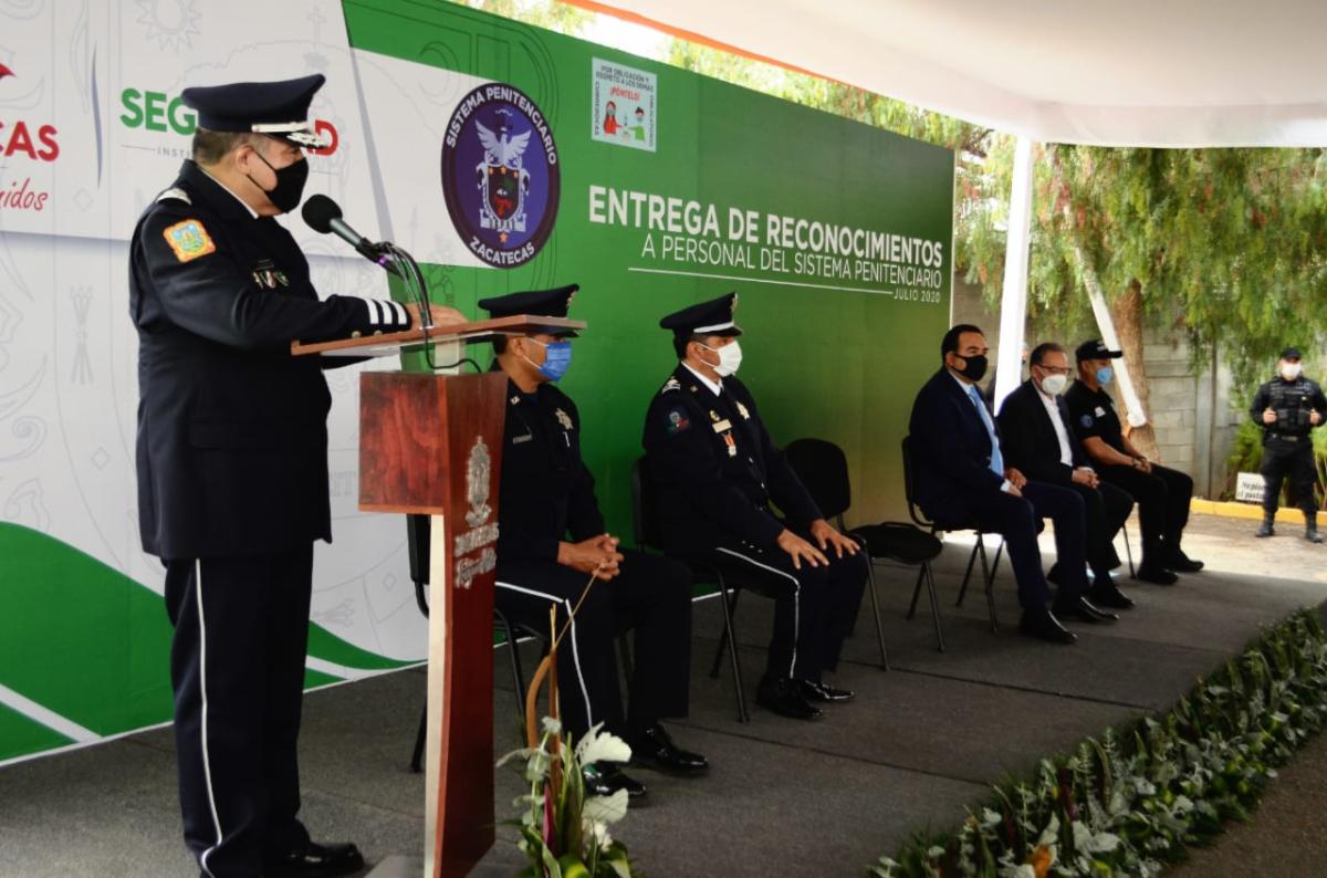 Ismael Camberos Hernández, secretario de Seguridad Pública, recordó que el Gobernador Alejandro Tello estableció que cada 18 de julio se rinda el debido reconocimiento al Sistema Penitenciario, sin embargo, dadas las actuales condiciones sanitarias se decidió organizar un evento simbólico para reconocer al personal.