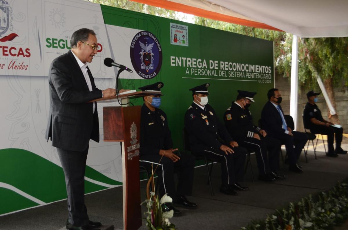 Zacatecas, Zac.- En el marco de la conmemoración del Sistema Penitenciario, el Gobierno Federal otorgó al Sistema Penitenciario de Zacatecas la presea Sergio García Ramírez, por buenas prácticas y gobernabilidad en los centros penitenciarios, así como un reconocimiento por el adecuado manejo de la pandemia del COVID-19.