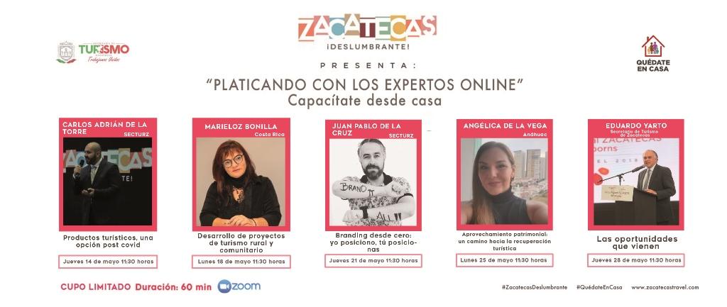 Zacatecas, Zac.- Inició el segundo ciclo de conferencias online «Platicando con los expertos» auspiciado por la Secretaría de Turismo (Secturz) con la finalidad de profesionalizar, desde casa, al sector turístico de Zacatecas Deslumbrante.
