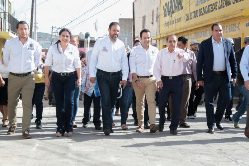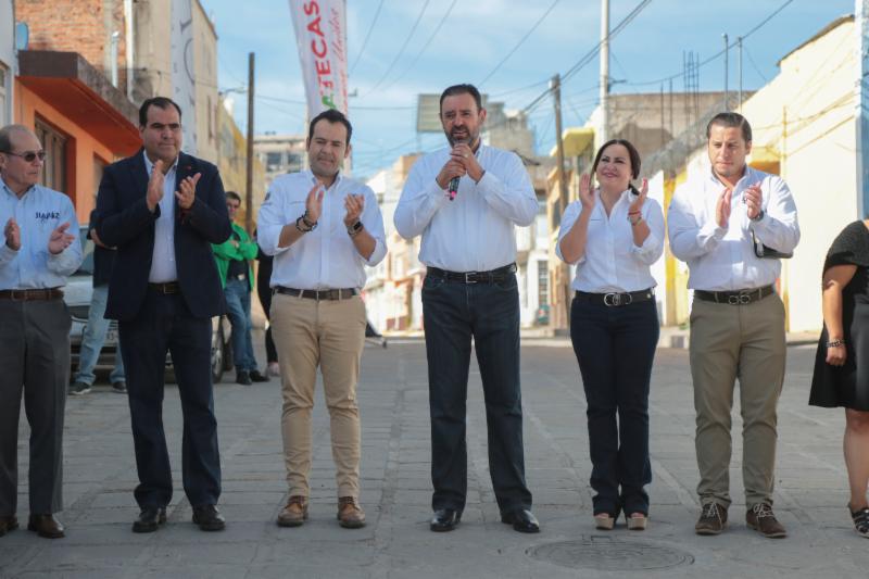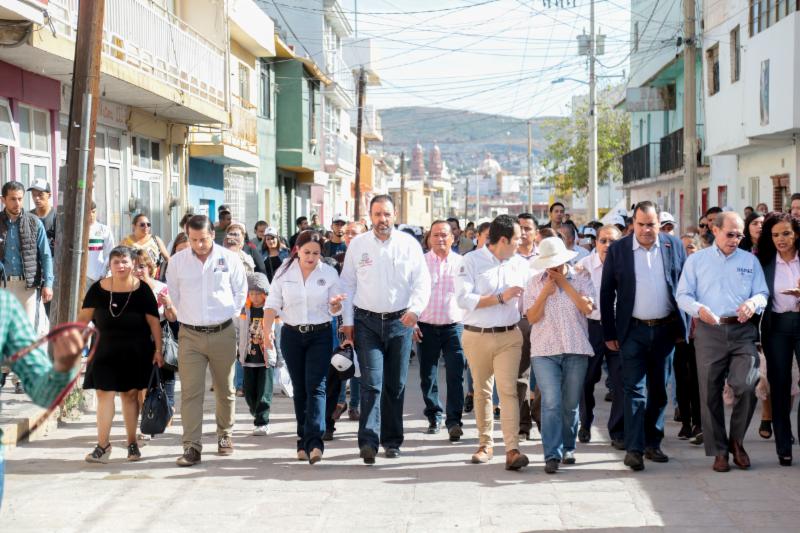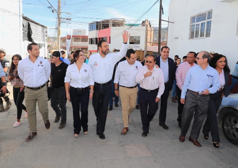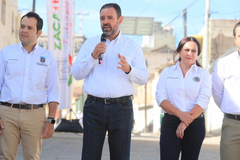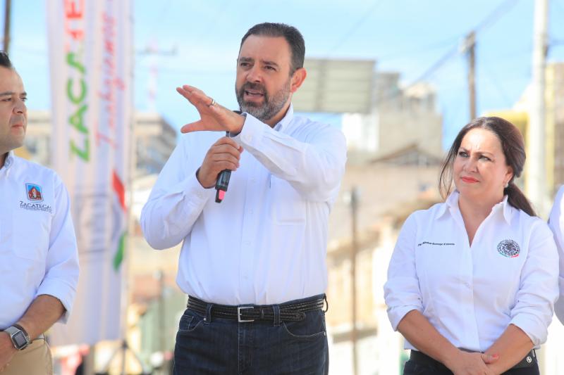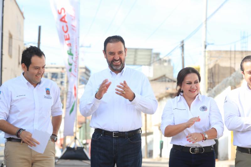 Zacatecas, Zac.-Al inaugurar la rehabilitación de la calle Pánfilo Natera, en una de las colonias más antiguas y pobladas de la capital zacatecana que lleva el mismo nombre, el Gobernador Alejandro Tello enfatizó que cuando se unen esfuerzos de distintos órdenes de gobierno se logran grandes acciones a favor de la población. En ese sentido, aplaudió haber puesto en marcha, junto con el alcalde de Zacatecas, Ulises Mejía Haro, una obra que mejora la calidad de vida de cientos de capitalinos y anunció que su gobierno prepara acciones importantes en obra pública para el municipio. Entre ellas, algunos retornos y pasos a desnivel en el bulevar Adolfo López Mateos, que mejorarán la circulación en la columna vertebral de la zona metropolitana. Además, destacó que realizará una inversión importante para mejorar los depósitos de residuos. «Todos conocemos lo que era el tiradero de basura en Bracho, que se convirtió en la Jioresa, pero no ha funcionado como se quisiera, por eso estamos próximos a generar una nueva celda, donde se pueda depositar la basura por muchos años más», explicó. Alejandro Tello también anunció que renovará la iluminación escénica del Centro Histórico, «miles de lámparas que están fundidas se van a cambiar en su totalidad, porque los monumentos de la Joya de la Corona deben quedar para lucimiento de propios y extraños». En el tema de seguridad señaló que ha tenido el respaldo de Ulises Mejía para el establecimiento de la Guardia Nacional. También dijo que hay trabajo coordinado para un mejor control en la venta de bebidas embriagantes. Asimismo, el mandatario refirió que hay inversión para la perforación de pozos, a fin de que la población tenga agua y no se recurra al tandeo. Refirió que recientemente se inauguró un sistema de agua potable en Guadalupe que da beneficios para Zacatecas. Otra obra de la que habló fue de la rehabilitación del Parque Arrollo de la Plata, donde está próximo a inaugurar más de 300 luminarias para devolverle la seguridad al lugar. «Cuando se unen esfuerzos, cuando no hay otro interés que generar lo que la gente nos exige y lo que es nuestra encomienda, se pueden hacer las cosas; quedan dos años de trabajo intenso y, así como la calle Pánfilo Natera, muchas otras obras están por llegar», agregó. El Gobernador Alejandro Tello reconoció el trabajo de Ulises Mejía, con quien tiene comunicación permanente y han trabajado de manera conjunta. «Ayúdenme a cerrar muy bien el gobierno, yo necesito de ustedes, ustedes necesitan de nosotros, Zacatecas necesita de todos». Por su parte, el alcalde capitalino agradeció al titular del Ejecutivo por el trabajo coordinado «para juntos hacer historia». Por ello le ofreció su disposición para continuar en esa dinámica de trabajo, en donde con aportaciones estatales, federales y municipales se pueden realizar obras importantes. Respecto de los trabajos realizados en la calle Pánfilo Natera, Mejía Haro detalló que sustituyó la red de agua potable que tenía más de cinco décadas de antigüedad y se mejoró la loza, con una inversión de 5 millones 690 mil pesos, en beneficio directo de 350 colonos.