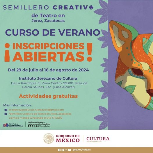 Si quieres que tus hijas e hijos aprendan cosas diferentes a lo que siempre hay en verano, llévales al Curso de verano con el Semillero Creativo de Teatro en Jerez, Zacatecas. A donde, a través del juego, aprenderán herramientas que les serán útiles toda la vida.