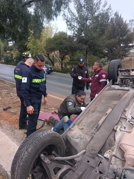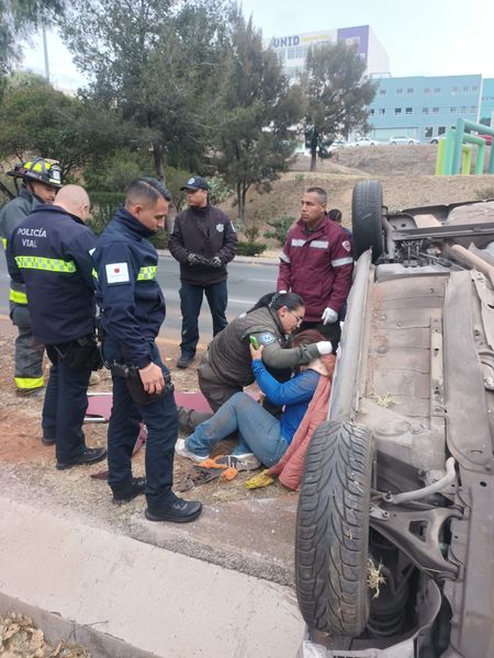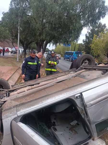 Zacatecas, Zac.- Dos mujeres lesionadas y daños de consideración fue el saldo de una volcadura de un vehículo compacto en un percance que ocurrió la mañana de este lunes en el Bulevar Metropolitano, a la altura del Hotel Don Miguel, en la capital de Zacatecas. Paramédicos, rescatistas y bomberos de la Coordinación Estatal de Protección Civil, CEPC, atendieron la emergencia y en lugar localizaron un automóvil de la marca Renault tipo Clío con placas de circulación del estado de Zacatecas, completamente volcado sobre el camellón central el cual era tripulado por dos mujeres y un menor de edad quienes fueron trasladados a recibir atención médica. El informe preliminar señala que testigos afirman que antes de volcar el vehículo este choco contra un taxi del municipio de Guadalupe de la marca Nissan tipo Tsuru de color azul y blanco, con el número económico 180 con placas del Servicio Público del estado de Zacatecas, que manejaba el señor Francisco «N» de 65 años el cual no presenta lesiones. Agentes de la Dirección de Policía de Seguridad Vial tomaron conocimiento de los hechos.