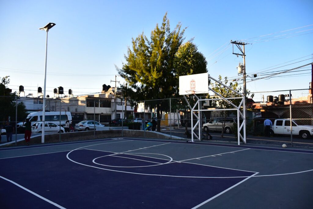 Además, esta obra también consistió en la construcción de un módulo palapa, la instalación de ocho luminarias solares LED de 100 watts, más de 230 metros cuadrados de piso adocreto y más de 760 metros cuadrados de pintura Surface en cancha y área de juegos.