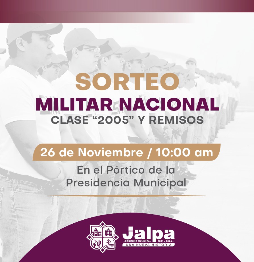 El Gobierno Municipal de Jalpa te informa sobre la fecha del Sorteo Militar Nacional, clase 2005 y remisos. #UnaNuevaHistoria 24 noviembre, 202324 noviembre, 2023efrain TAMBIÉN TE PUEDE INTERESAR FIRMA SNE CONVENIO DE COLABORACIÓN CON AYUNTAMIENTOS DE LA REGIÓN JALPA