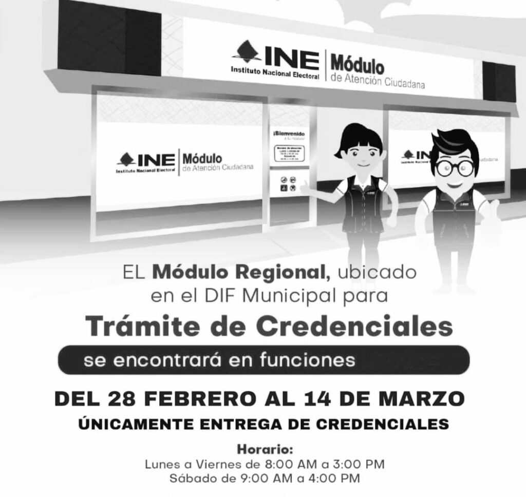 El Módulo del INE informa que se estarán entregando credenciales en las instalaciones del SMDIF
