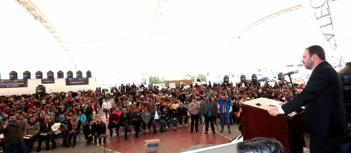Reunidos en la Megavelaria de las instalaciones de la Feria Nacional de Zacatecas (Fenaza), más de 1 mil beneficiarios recibieron material para construcción, tinacos y calentadores solares, que mejorarán la calidad de vida de estas personas y sus familias.