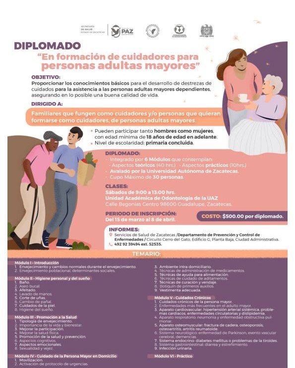 I El Instituto para la Inclusión de las Personas con Discapacidad Zacatecas te invita al Diplomado «En formación de cuidadores para personas adultas mayores».