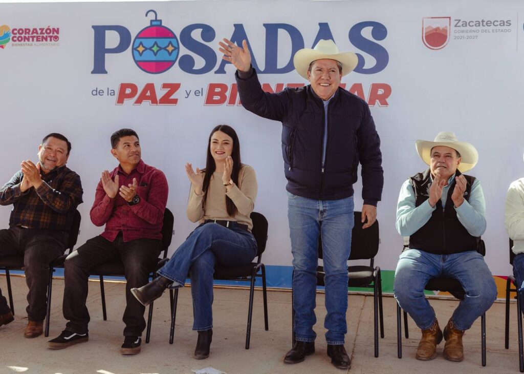 En esta comunidad del municipio de Fresnillo, el mandatario estatal encabezó la Posada de la Paz y el Bienestar, en la que entregó despensas del programa Corazón Contento y reiteró su compromiso con el desarrollo de las comunidades más vulnerables.