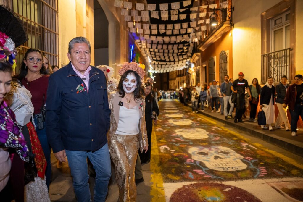 Encabeza Gobernador David Monreal recorrido inaugural y homenaje a personajes zacatecanos en Festival de Día de Muertos 2025