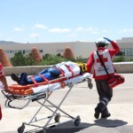Como parte del simulacro nacional, en el dispositivo interno del Edificio A se registraron dos personas lesionadas, que “fueron trasladadas por elementos de la Cruz Roja y la Coordinación Estatal de Protección Civil.