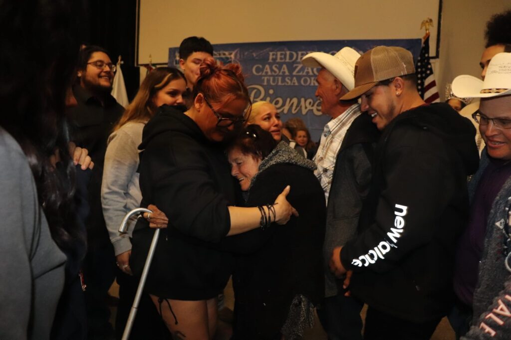 En Tulsa, Oklahoma la Federación “Casa Zacatecas”, que preside Florencia Trejo, junto a sus integrantes de la mesa directiva, de los clubes y los familiares, recibieron con música, carteles, globos, arreglos florales, sobre todo con fuertes abrazos y gritos, lágrimas, y besos a cada uno de sus padres y madres.