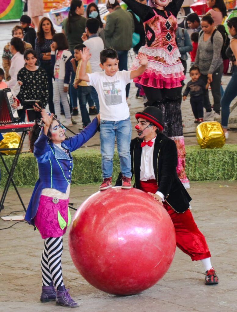 Posteriormente, la presentación artística “Del Tingo al Tango”, proveniente de la Ciudad de México, cautivó a la audiencia con un programa divertido, al estilo circense, que comprende entre música en vivo, malabares, payasos y acróbatas profesionales.