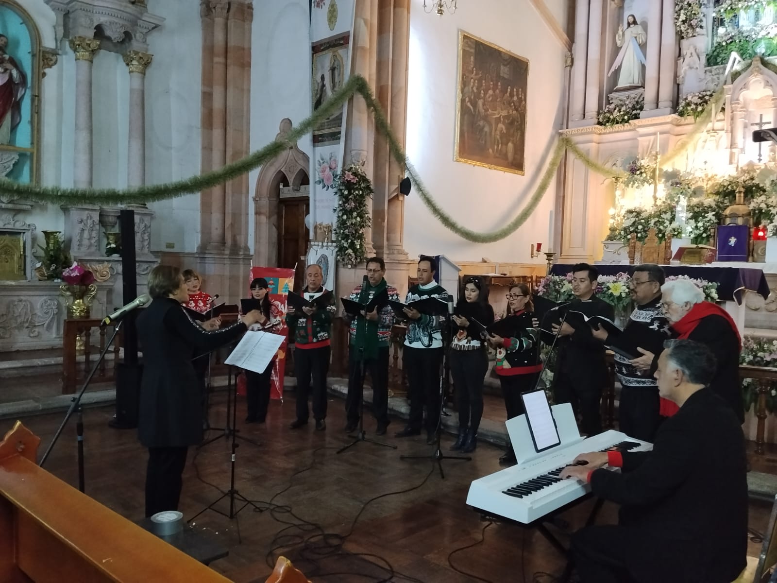 Encanta concierto del Ensamble Voces del Alma con repertorio navideño, en el Templo de Guadalupito