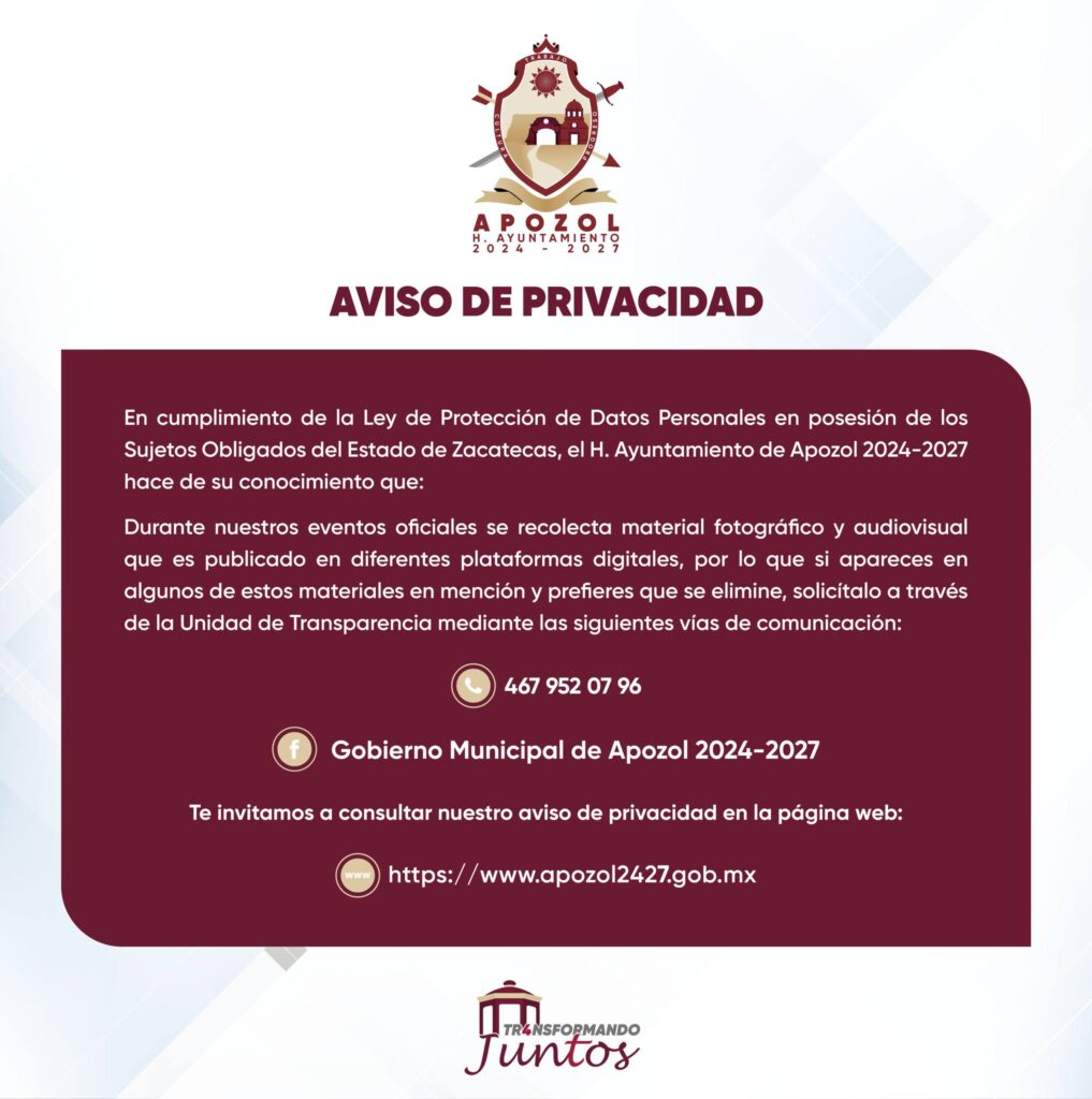 “Seguimos Transformando Juntos Apozol” Trabajamos por ti.