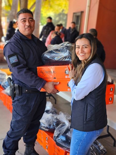 Apozol, Zac.; a 19 de enero de 2024. Continúa la edil Gabriela Arellano Quezada, fortaleciendo al Departamento de la Dirección de Seguridad Pública Municipal mediante la entrega de uniformes.El evento se realizó en las propias inmediaciones de esta corporación en la que la alcaldesa, acompañada por autoridades del Ayuntamiento, expuso que el interés de la actual administración es sumarse a la estrategia del mandatario estatal, el Lic. David Monreal Ávila, en fortalecer la labor y dignificar a las corporaciones policiales municipales y estatales, pero sobre todo, de dotarlos de herramientas adecuadas para el desempeño de sus funciones y que, esta entrega, es en reconocimiento al espíritu de servicio que demuestran de forma permanente al velar por la seguridad de las y los Apozolenses.“Transformando Juntos Apozol” Trabajamos por ti.