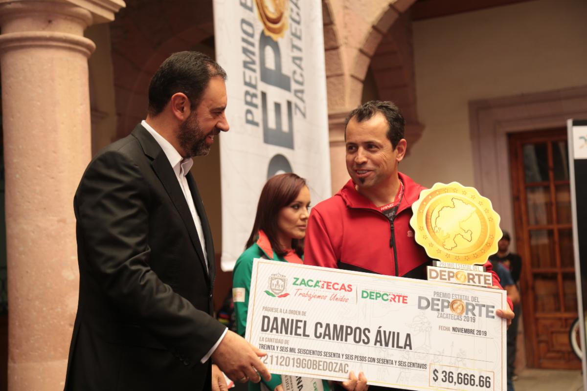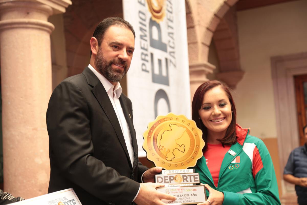 Zacatecas, Zac.-El Gobernador Alejandro Tello reconoció a las y los atletas de Zacatecas, con la entrega del Premio Estatal del Deporte 2019, el cual ganaron la marchistas Ilse Guerrero Rodarte, el entrenador de BMX, Daniel Campos Ávila y al promotor del baloncesto, Bernardo Rodríguez Rentería.