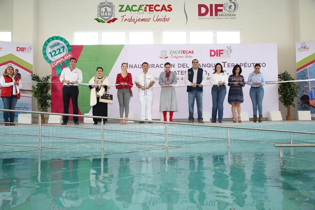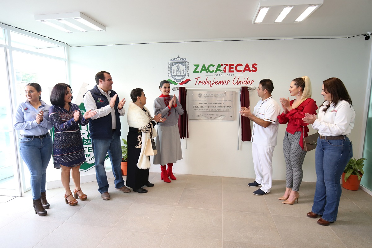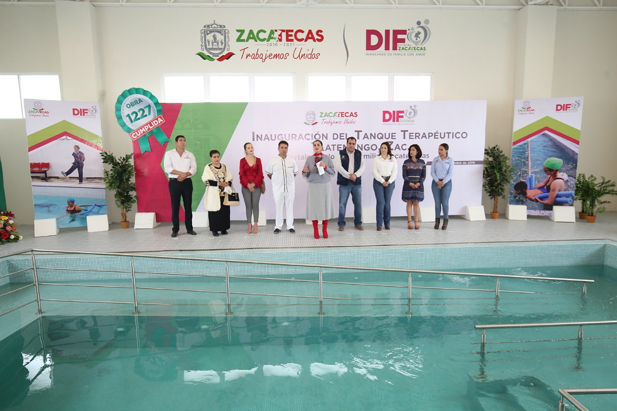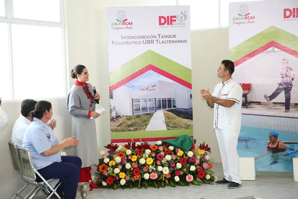 Tlaltenango, Zac.- La Presidenta Honorífica del Sistema Estatal para el Desarrollo Integral de la Familia (SEDIF), Cristina Rodríguez de Tello inauguró el tanque terapéutico de Tlaltenango, el cual dará atención a personas con discapacidad de ese municipio y de otros aledaños como Momax, Tepechitlán, Teúl de González Ortega, Santa María de la Paz, entre otros.