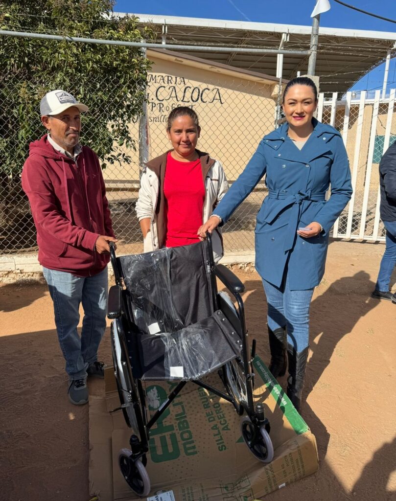Durante los recorridos en territorio y en el marco de los eventos de entrega de calzado escolar, la secretaria Bennelly Hernández identificó necesidades específicas y realizó la entrega directa de sillas de ruedas en diversas comunidades, tales como Plenitud, Los Ángeles de los Medrano y La Manga en Fresnillo. Estas acciones fortalecen el bienestar y mejoran la calidad de vida de quienes, por una enfermedad o condición física, dependen de un apoyo funcional para desplazarse.